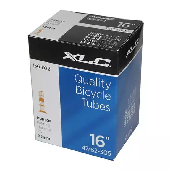 Camera d’aria XLC VT-D16 da 16×1.75/2.125 con valvola Dunlop da 32 mm. ETRTO: 47/62-305.