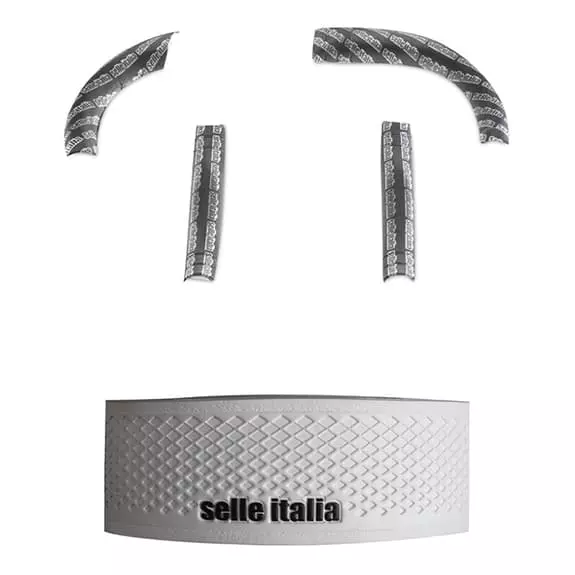 Il nastro da manubrio Selle Italia Shock Absorber è un nastro speciale che garantisce maggiore comfort e un’ottima presa, migliorando il rendimento e la sicurezza. Le tensioni stradali solitamente vengono trasmesse al manubrio creando vibrazioni sgradevoli e quindi un fastidioso formicolio alle mani, mettendo in discussione il comfort e la presa stessa, con inevitabili ripercussioni negative sulla sicurezza e sul rendimento. Per poter assorbire e ridurre al minino occorre un manubrio”muscoloso”: un’idea semplice ma brillante, introdotta dallo Shock-Absorber Kit di Selle Italia. Lo Shock-ABSORBER kit è composto da due parti: Bar Pad e SG-Tape. I cuscinetti sono composti da tre strati realizzati in diversi materiali: il primo in gel che simula il movimento dei muscoli comprimendosi e trovando in pochi secondi la forma originale rispettando la pressione della mano. Oltre allo strato in gel sono presenti lo strato in schiuma PU e un ultimo strato in Lycra che aumentano la morbidezza dei cuscinetti della traversa.