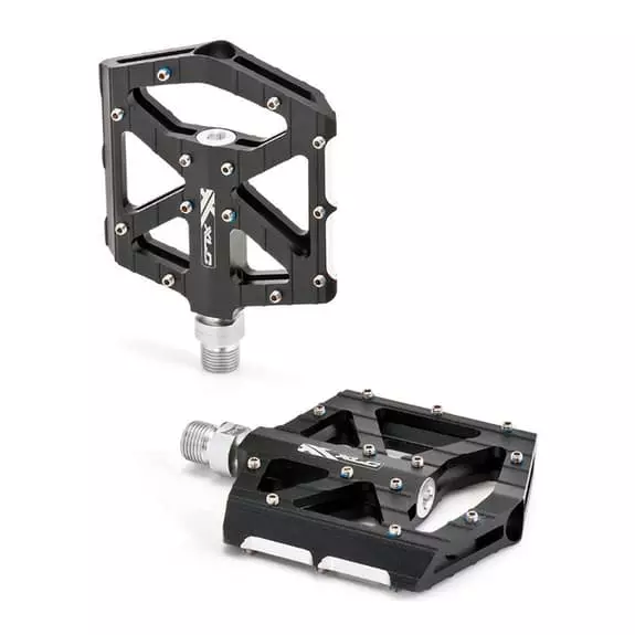 Pedali flat XLC BMX/Freeride PD-M12 con design ultrapiatto e superficie ampia, realizzati in alluminio forgiato con lavorazione CNC. Ha due chiodini intercambiabili.