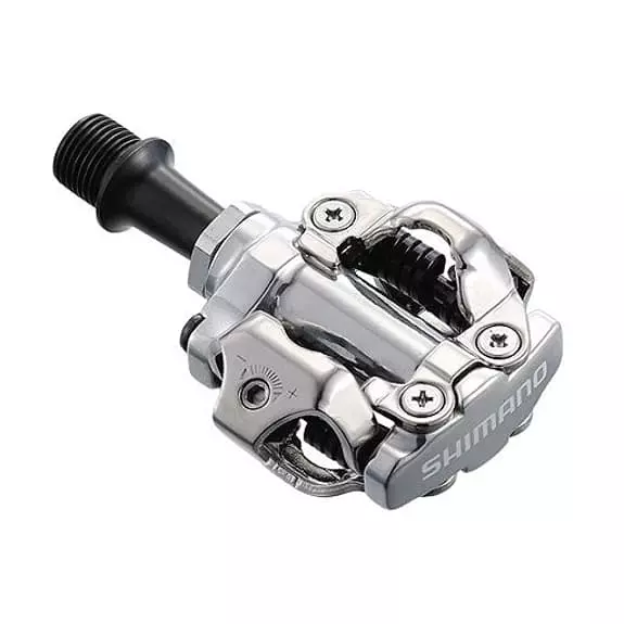 Pedali Shimano M540 per tacchetta SPD con tensione di aggancio e sgancio regolabile. Migliore repellenza di fango e sporco di qualsiasi altro pedale del suo genere. Asse in lega di cromo e asse di cartuccia cuscinetti sigillati a basso manutenzione.