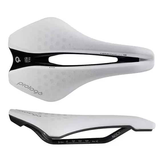 La sella Prologo Dimension TRI è stata progettata per il triathlon e le prove a cronometro. Garantisce ottime prestazioni, migliorando il comfort in tutte le fasi della pedalata grazie alla forma ergonomica a V-SHAPE. I test condotti in pista e in galleria del vento con alcune delle principali squadre professionistiche del mondo hanno confermato un miglioramento delle prestazioni del 5-8%.