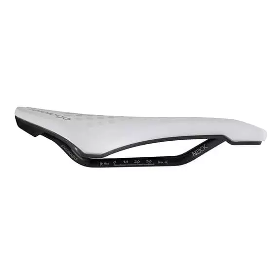 Le schiume a densità variabile, aumentate del 15% nella parte superiore e nella punta della sella, consentono di aumentare l’area di appoggio, dissipando le pressioni in modo omogeneo, oltre a garantire una maggiore area di appoggio per la zona antero-ischiale, soprattutto nella posizione aerodinamica massima. La superficie per sedersi è stata spostata in avanti di 2 cm.