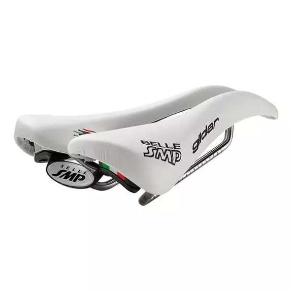 Sella Selle SMP Glider CRB con telaio di fibra di carbonio unidirezionale 7,1×9,6 mm che usa la stessa struttura del modello Composit, combinato con un’imbottitura comoda. È rivestito in vera pelle nelle versioni in colore nero e di microfibra di Lorica per le versioni a colori. Ha delle caratteristiche “allround” ideali ed è particolarmente adatto per i bacini medi. Il modello Glider è imbottito con elastomero nei punti d’appoggio delle protuberanze ischiatiche e delle natiche. Le caratteristiche brevettate di SMP, come il canale centrale completamente aperto, la punta a becco d’aquila e la parte posteriore più alta, danno a questi modelli un interessante tocco di aerodinamicità. Grazie alla comoda imbottitura è adatto specialmente per le persone con il bacino medio-largo, sia uomini che donne.
