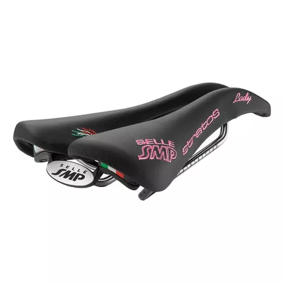 La sella Selle SMP Stratos Carbon Lady usa la struttura del modello Composit con un’imbottitura media per un comfort extra. Il modello CRB ha i binari in fibra di carbonio unidirezionale che alleggeriscono il peso totale e aumentano la rigidità. È rivestito in vera pelle nelle versioni in colore nero e di microfibra di Lorica per le versioni a colori. Il modello Stratos è imbottito con elastomero nei punti d’appoggio delle protuberanze ischiatiche e delle natiche. Le caratteristiche brevettate di Selle SMP, come il canale centrale completamente aperto, la punta a becco d’aquila e la parte posteriore più alta, danno a questi modelli un interessante tocco di aerodinamicità. Grazie alla combinazione tra imbottitura leggera ma comoda e una struttura stretta, la Stratos rappresenta la soluzione intermedia ideale tra i modelli Evolution e Glider. È pensata per le cicliste con il bacino stretto o medio.