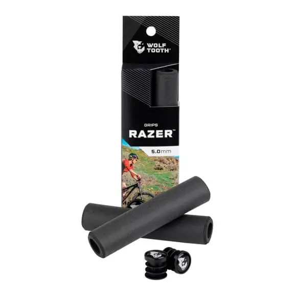 Le manopole Wolf Tooth Razer 5 mm di basso profilo e molto leggere, sono perfette per i ciclisti che preferiscono impugnature più sottili.